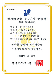 Selected as an Outstanding Job-Creating Company by Gangnam District in 2013