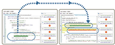 Visually presents the linkage information of source code related to identified security weaknesses.